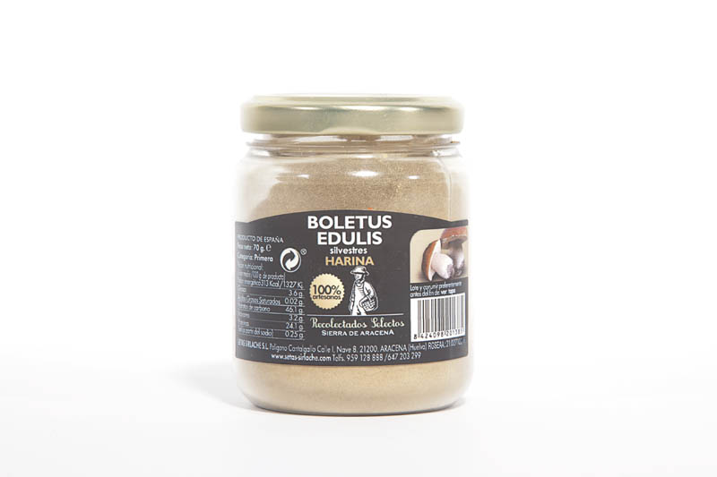 Harina de setas elaborada a partir de setas deshidratadas y posteriormente molidas.Se usan como condimento en guisos, bechamel, etc.