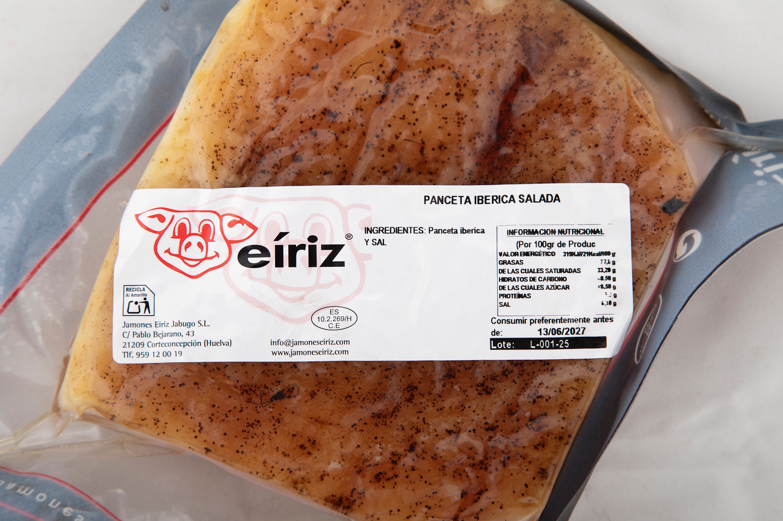 Taco de 700-900 gr. de panceta de bellota, 1 pieza al vacío